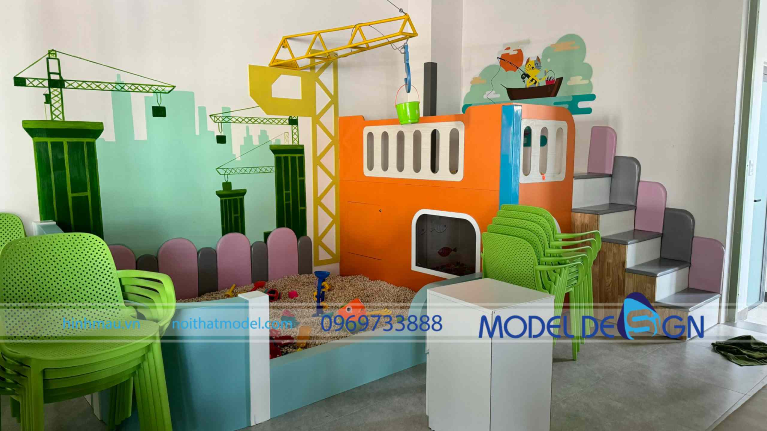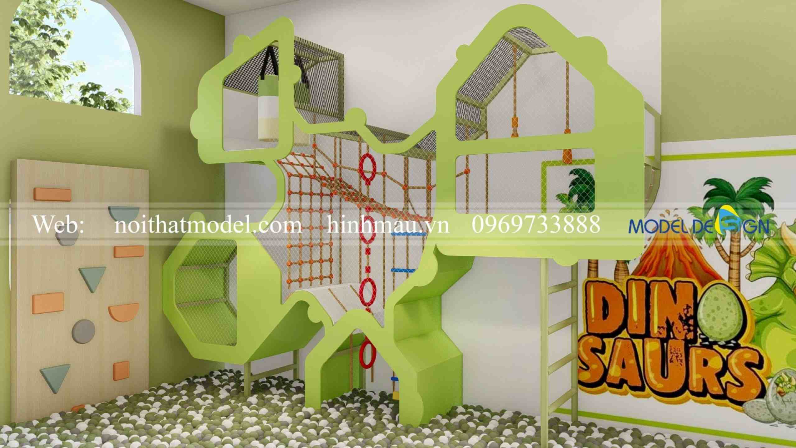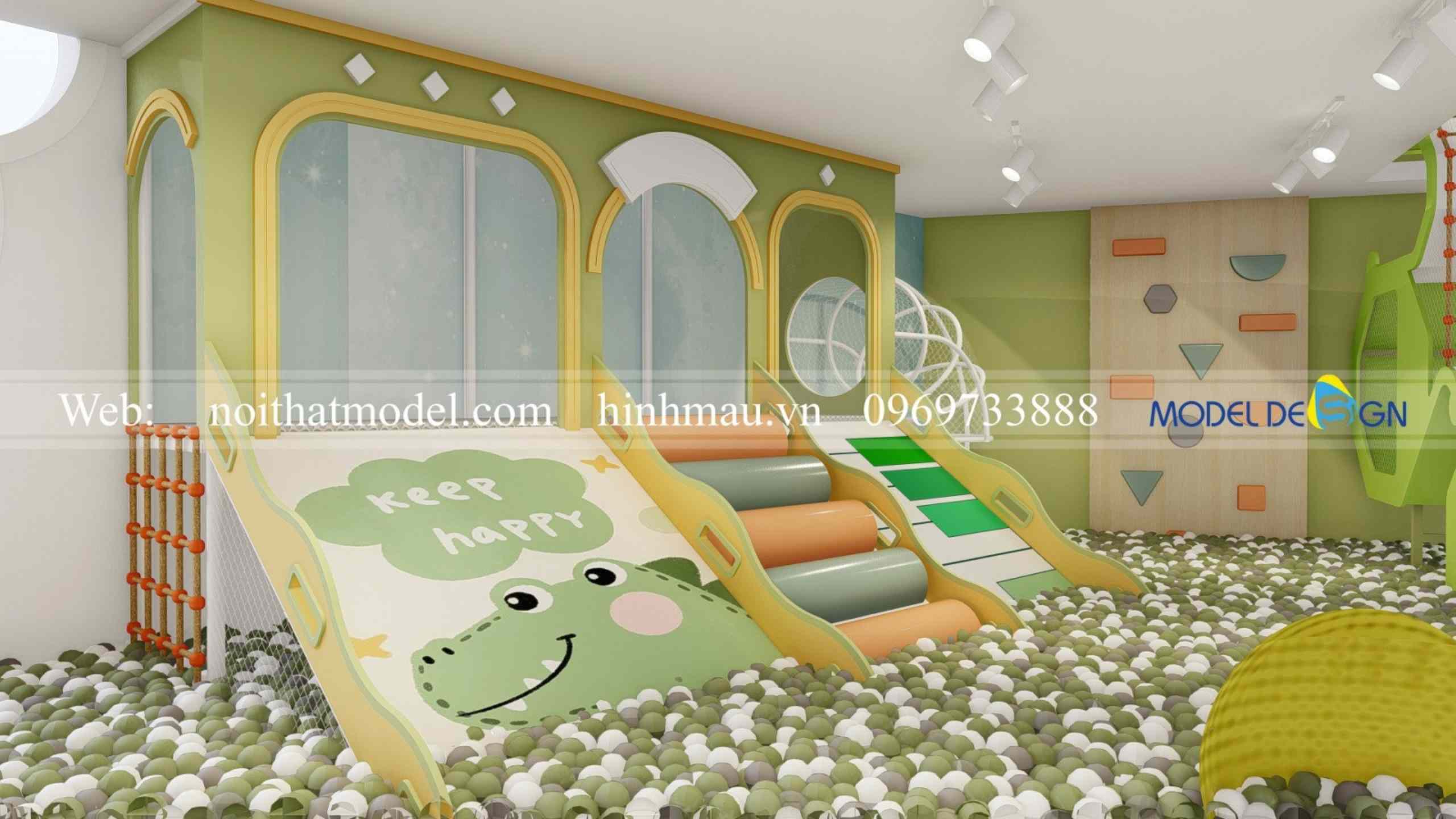 Khu vui chơi tone màu xanh lá cây đẹp cho bé
